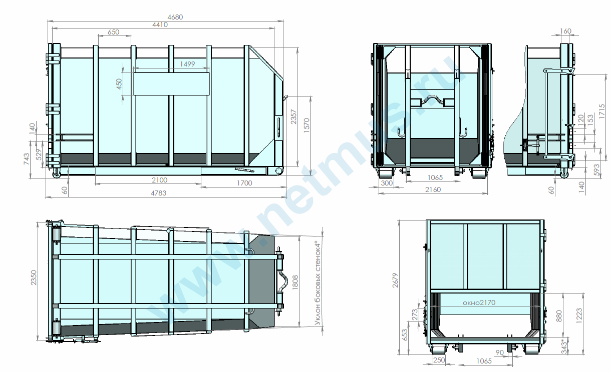 • возможно изготовление контейнеров с длиной базы от 3,7 до 7,3 м.