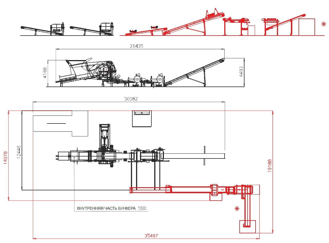 | Расположение магнитных барабанов и конвейерных лент меняется в соответствии с планом производственной площадки | ||