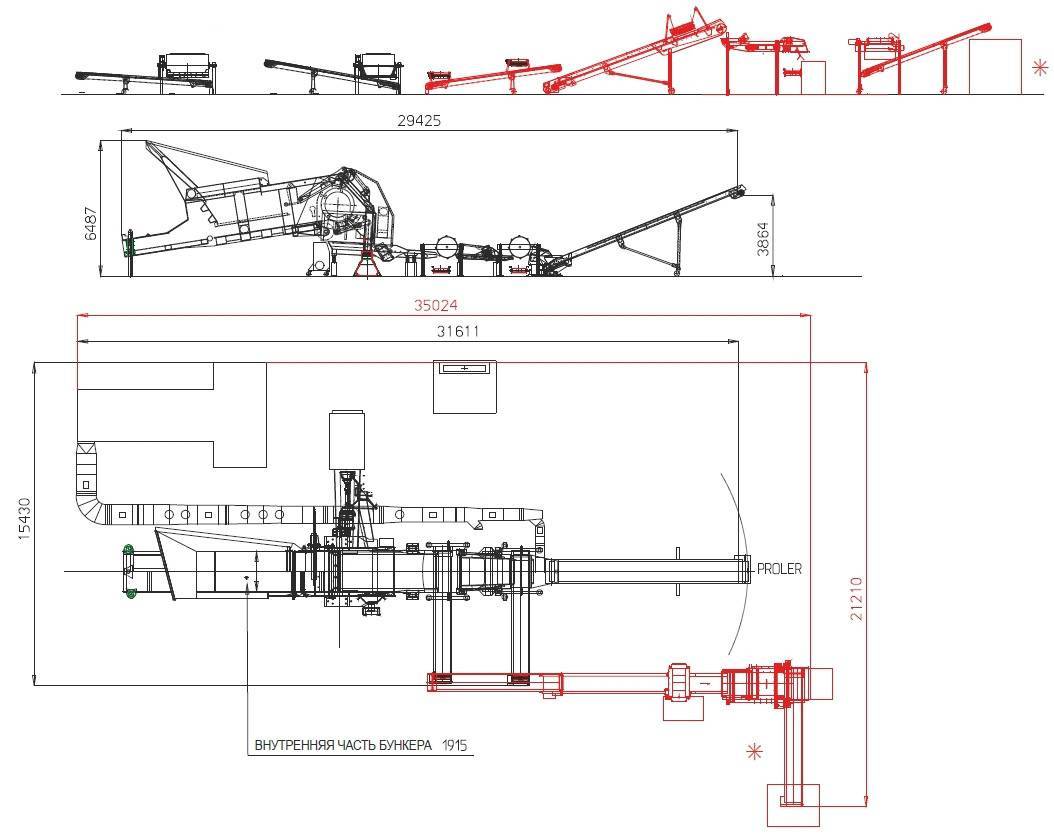 | Расположение магнитных барабанов и конвейерных лент меняется в соответствии с планом производственной площадки | ||