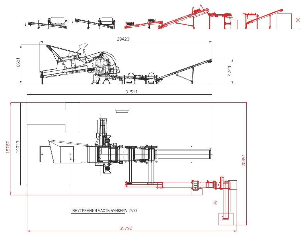 | Расположение магнитных барабанов и конвейерных лент меняется в соответствии с планом производственной площадки | ||