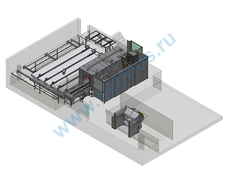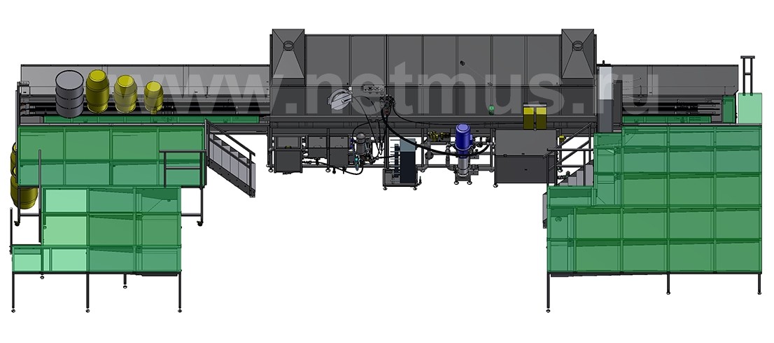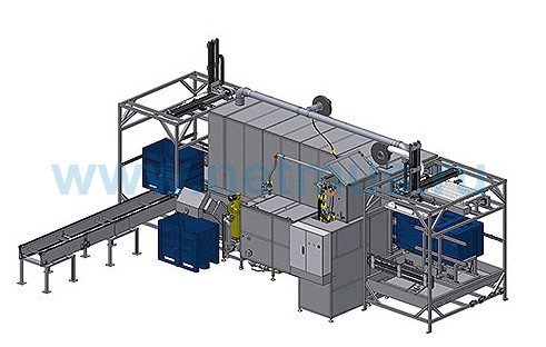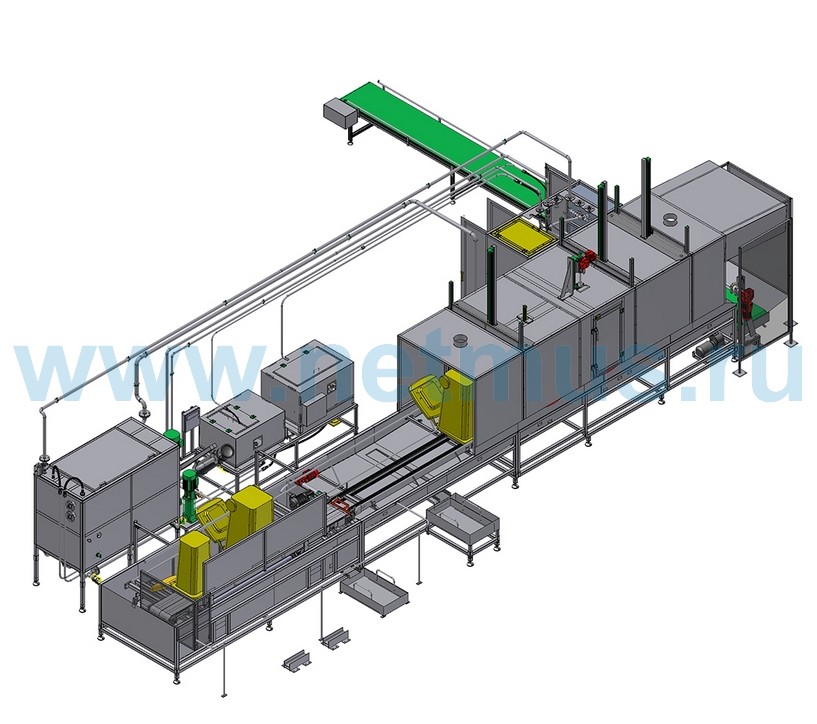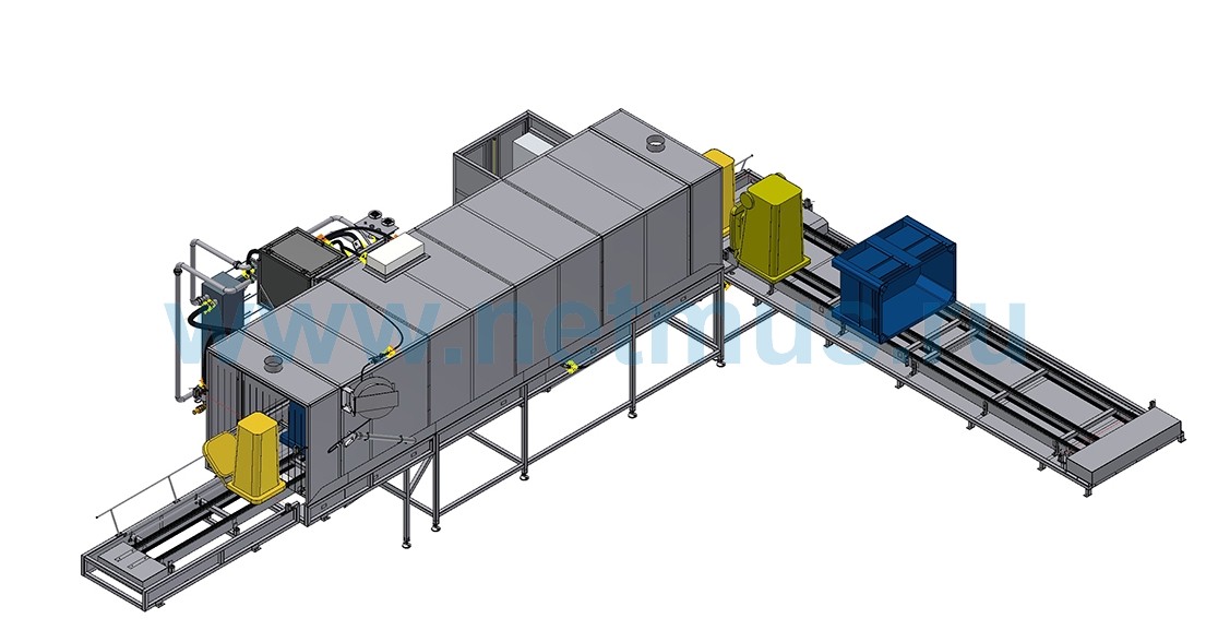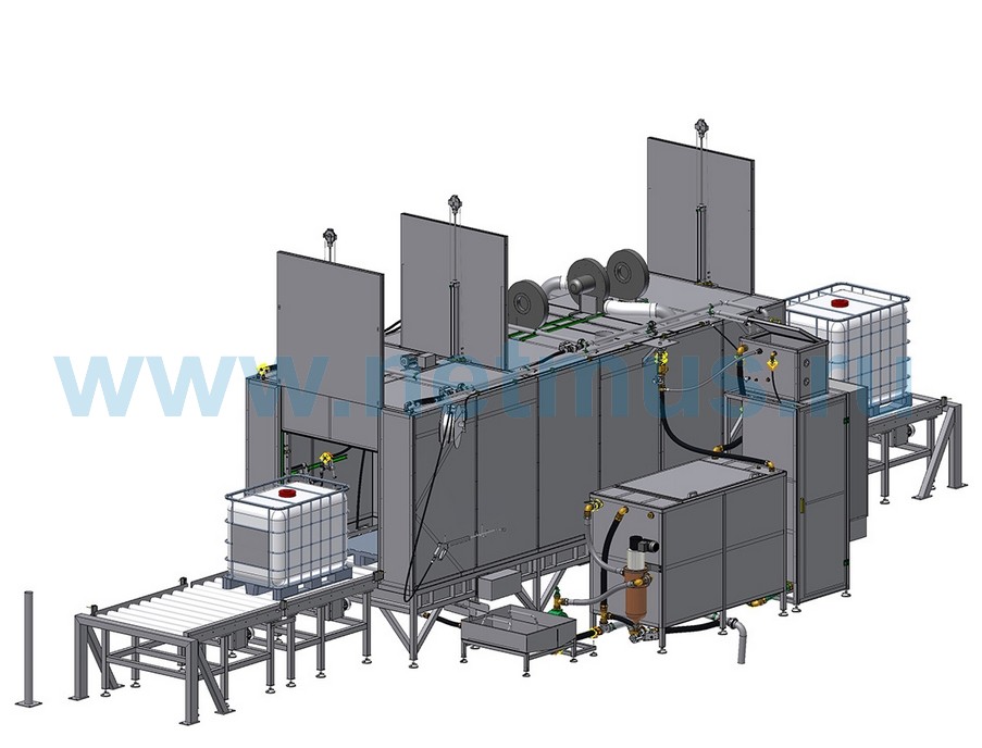 Cистема непрерывной промывки для автоматической внутренней и внешней очистки стандартных и индивидуальных контейнеров в закрытых кабинах.
