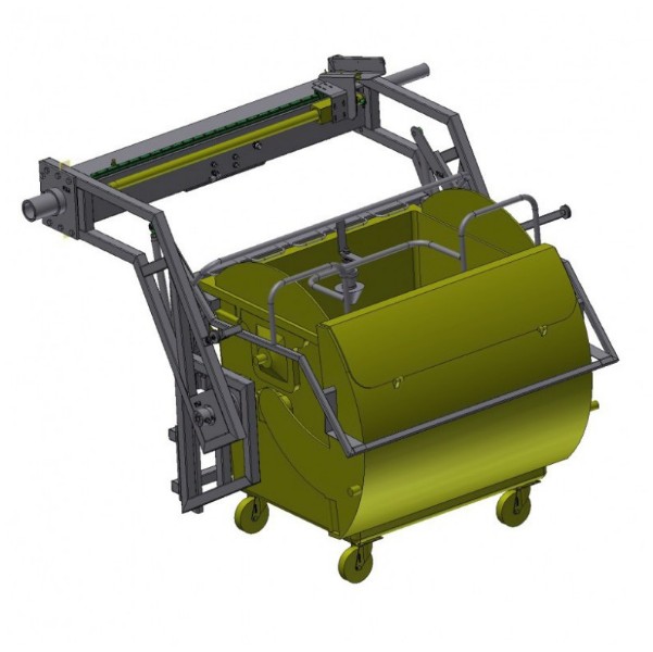 - Одновременная очистка двух 2-х колесных или одного 4-х колесного контейнера, объемом до 1100 литров.