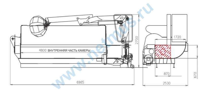 | Габариты загрузочной камеры | мм | 4800х1720 |