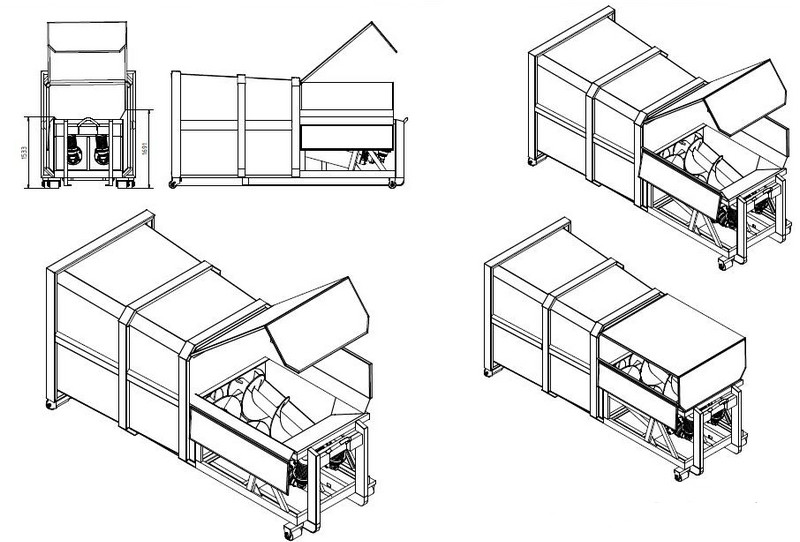• высокая производительность при переработке паллет до 500 шт/час (70 м3 в час).