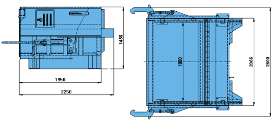 Версия LH - присоединение/отсоединение контейнера производится автоматическим способом, при помощи гидравлики. Отверстие в контейнере при перевозке закрывается автоматически шибером для избегания выпадения отходов при перевозке.
