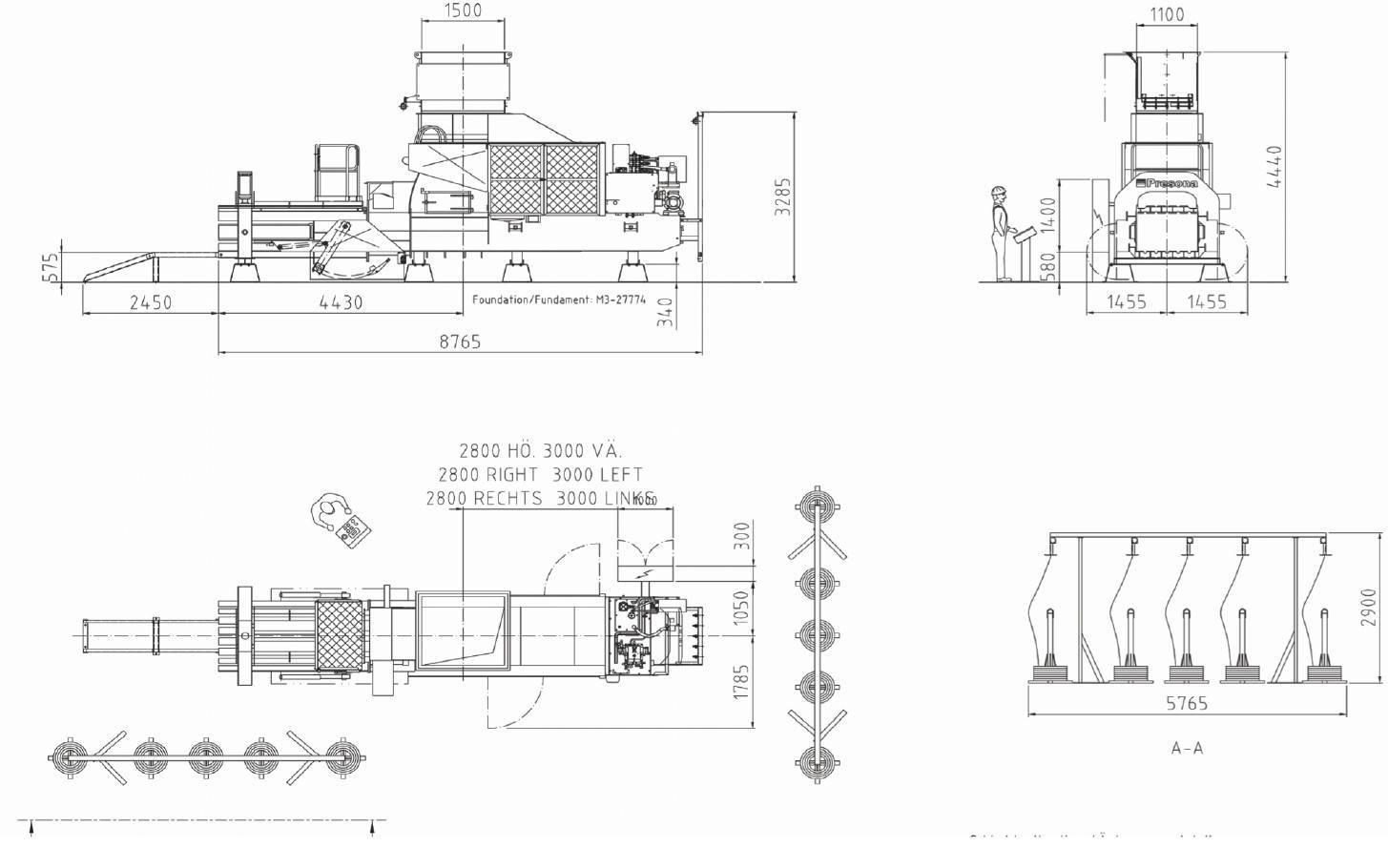 • главный привод 22 кВт (VH1), 37 кВт (VH2), 45 кВт (VH3) со сдвоенной системой гидронасосов.