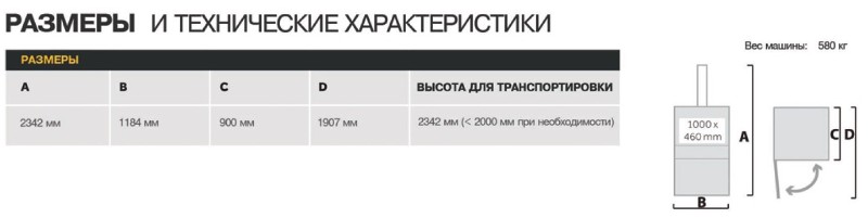 | Внешние размеры пресса (ВхШхГ) | мм | 2342х1184х900 |