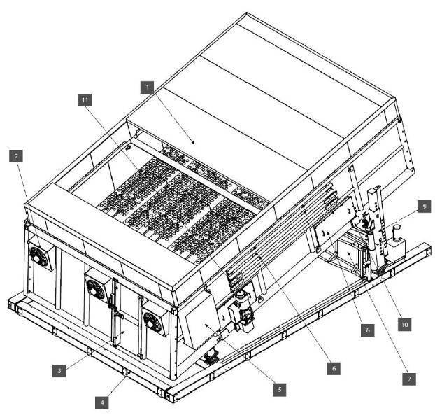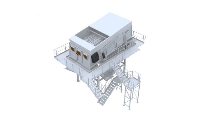 | Опорная конструкция | Опорная конструкция изготовлена из стальных профилей HEA 200, соединенных вместе болтами и закрепленных на опорах. Все эти элементы вместе образуют прочную единую конструкцию. Баллистический сепаратор оборудован мостками для техобслуживания, а также лестницами с поручнями для доступа по периметру оборудования. |