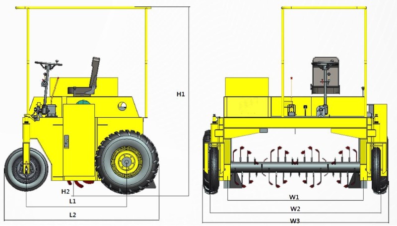Ворошитель компоста 2000 - это самоходная машина колёсного типа, которую можно адаптировать к различным условиям работы, с управлением одним человеком.