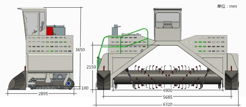 Ворошитель компоста 4800 - это самоходная машина гусеничного типа, которую можно адаптировать к различным условиям работы, с управлением одним человеком.