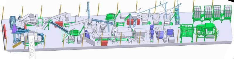 Оборудование, которое предлагает наша компания для обработки пневматических шин, обладает высокой гибкостью в использовании, так как оно способно обрабатывать и измельчать любой тип пневматических шин до состояния гранул. Переработка шин начинается с удаления металлокорда из бортов шины. Затем шины, двигаясь по линии, попадают в шредер, который измельчает пневматические шины на чипы для их последующей переработки. В конце всего процесса измельченные чипы с помощью ленточного конвейера направляются для выполнения операции гранулирования. В мельнице чипы измельчаются до гранул мельчайшего размера.