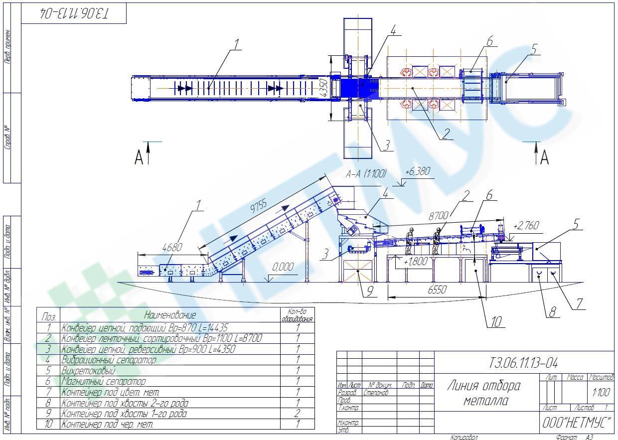 | 2 | Конвейер цепной №2 подающий вторсырье в пресс | 1 |