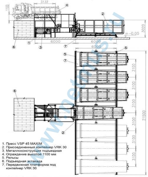 Станция перегруза отходов (линия перегрузки отходов) используется в целях снижения расходов (амортизация автотранспорта, заработная плата водителей, ГСМ и прочее) при транспортировке отходов на полигон. Например, мусоровозы собирают мусор по району различными контейнерами (от 8 м3 до 25 м3) и свозят их на линию перегрука, где отходы запрессовываются в контейнеры большого объема (27•37 м3) и транспортируются на полигон. Экономический эффект достигается за счет прессования отходов и использования контейнеров большого объема при транспортировке. Принцип работы линии заключается в том, что наполненный контейнер автоматически отсоединяется от пресса (автоматически отсоединяются удерживающие крюки и закрывается шибер в контейнере) и подается вперед, сдвигается на передвижной платформе вправо и его место занимает пустой контейнер, готовый к процессу прессования и заполнения. Заполненный контейнер находится на площадке для последующего вывоза автотранспортом.